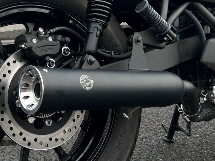 Lampenverkleidung von Puig, Faltenbälge, Endtopf von Falcon mit ABE, Hitzeschutzband am Krümmer, ein kurzes Heck, Lenkerendenspiegel von Highsider, 4 kleine LED Blinker und Hebel von Raximo machen dieses Einzelstück zu einem ganz besonderen Blickfang.