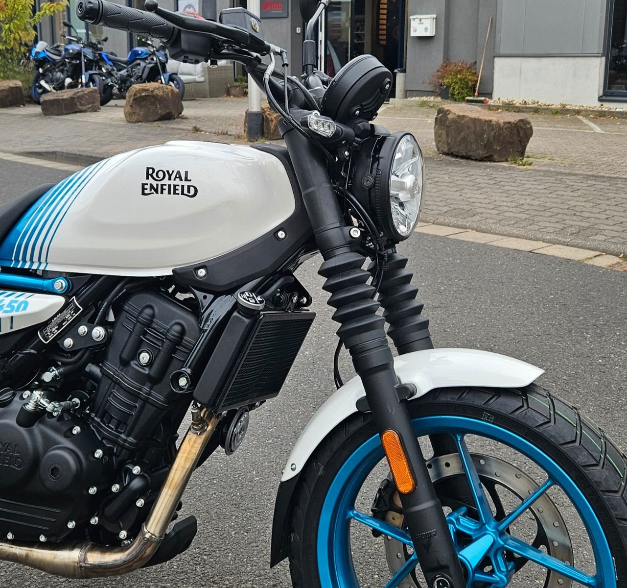 Dash Version mit Handynavigation über die Royal Enfield App mit Spiegelung im Display.